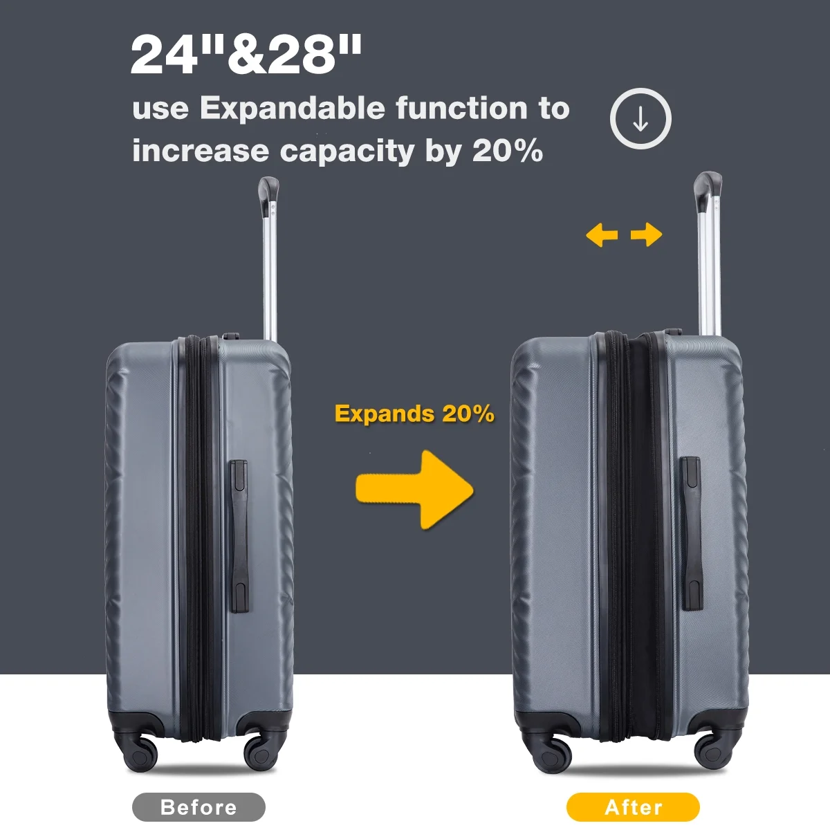 Countdownn 3 Piece Hardside Luggage Set Hardshell Expandable Lightweight Suitcase